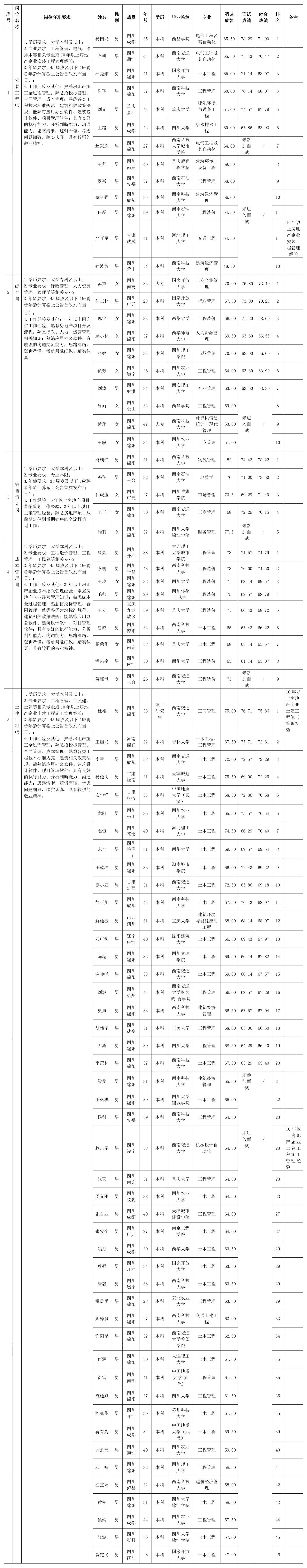 根據(jù)綿陽市綿投置地有限公司發(fā)布的招聘公告及招聘相關(guān)規(guī)定,經(jīng)筆試、面試等程序,現(xiàn)將筆試、面試成績予以公示。