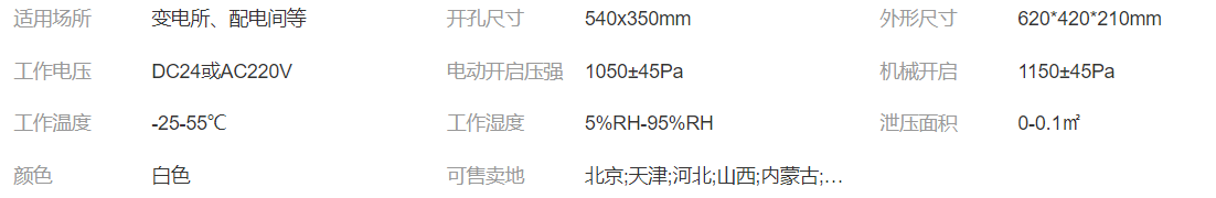 三、電動泄壓口參數: