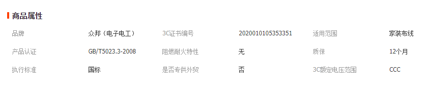 眾邦電線銅芯BV2.5電